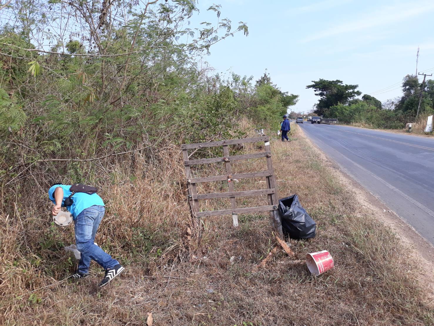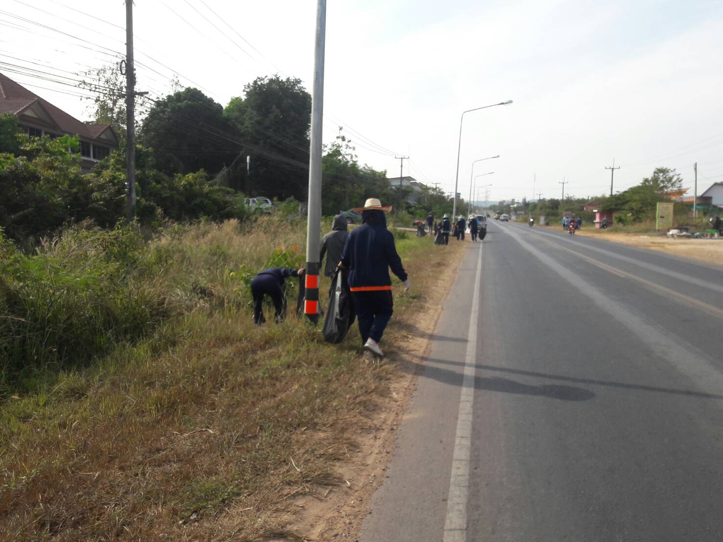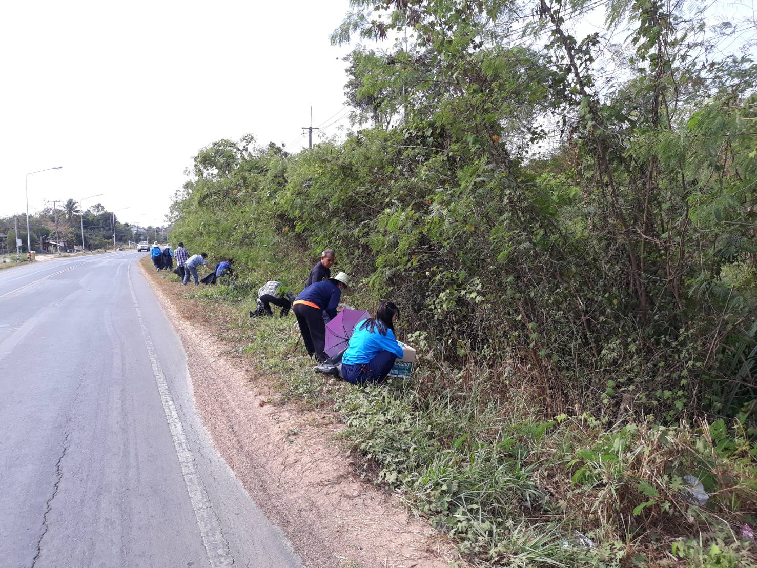 นายกองค์การบริหารส่วนตำบลน้ำเที่ยงพร้อมด้วยพนักงานร่วมกันเก็บขยะบริเวณถนนสายคำชะอี-กุฉินารายณ์ ตามแผนปฏิบัติการแยกก่อนทิ้ง 60 วัน
