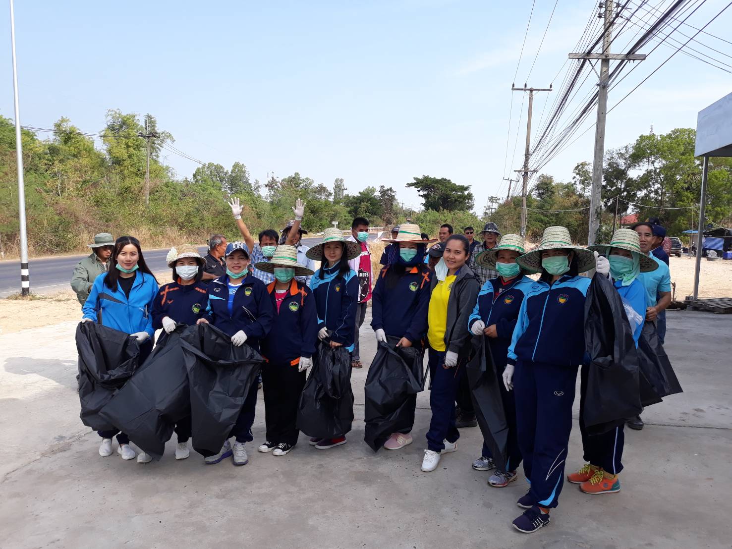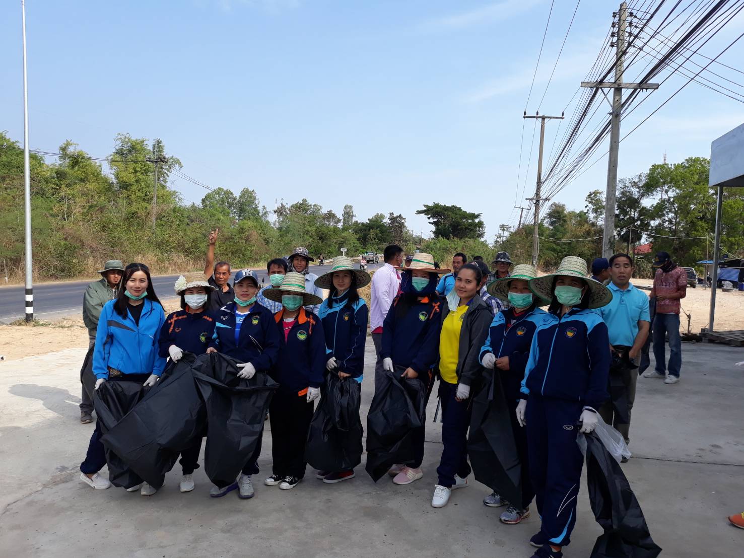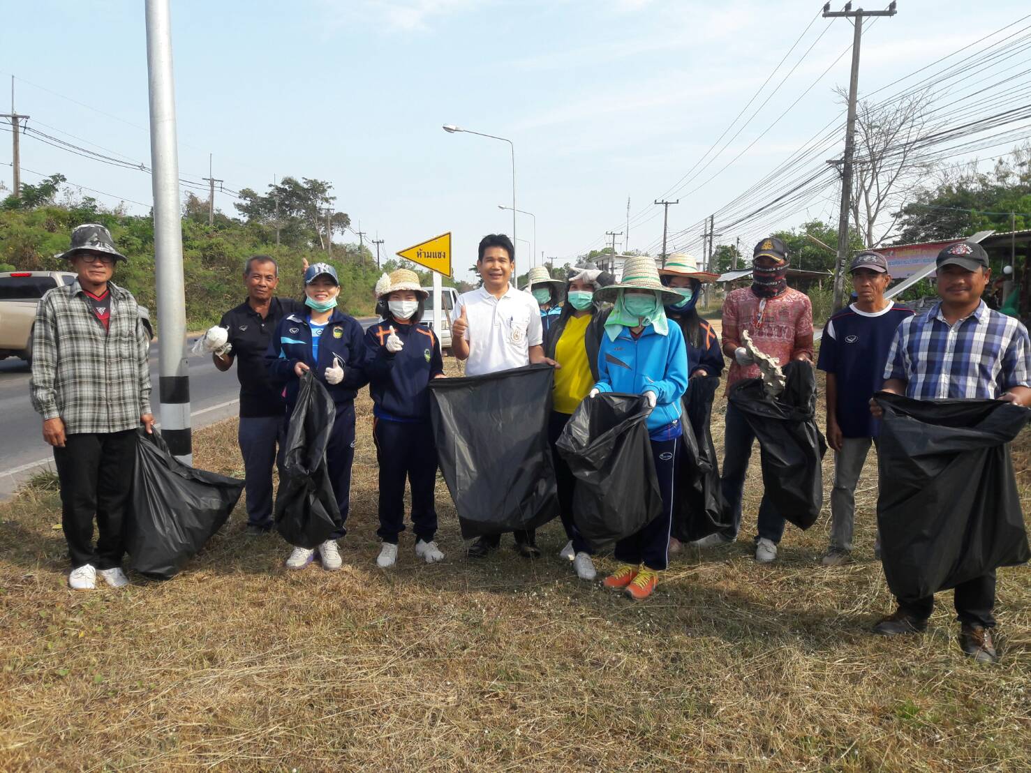 นายกองค์การบริหารส่วนตำบลน้ำเที่ยงพร้อมด้วยพนักงานร่วมกันเก็บขยะบริเวณถนนสายคำชะอี-กุฉินารายณ์ ตามแผนปฏิบัติการแยกก่อนทิ้ง 60 วัน
