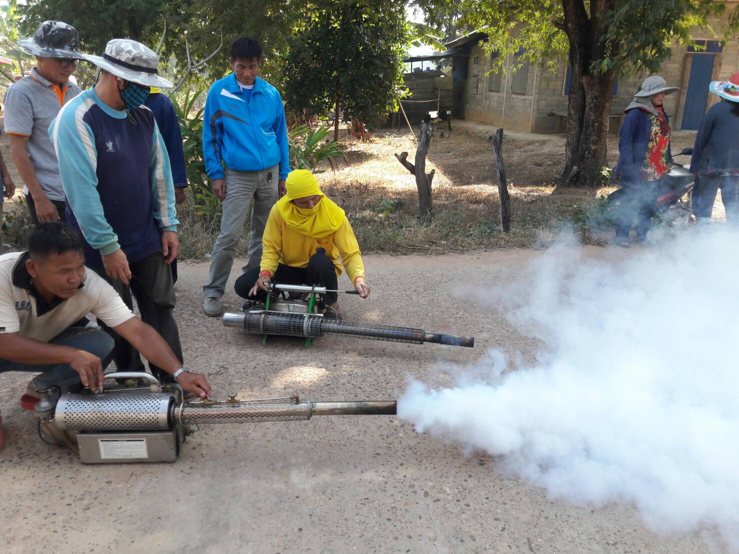 พ่นหมอกควันในพื้นที่หมู่ 3 เพื่อป้องกันแก้ไขปัญหาไข้เลือดออกให้กับประชาชน