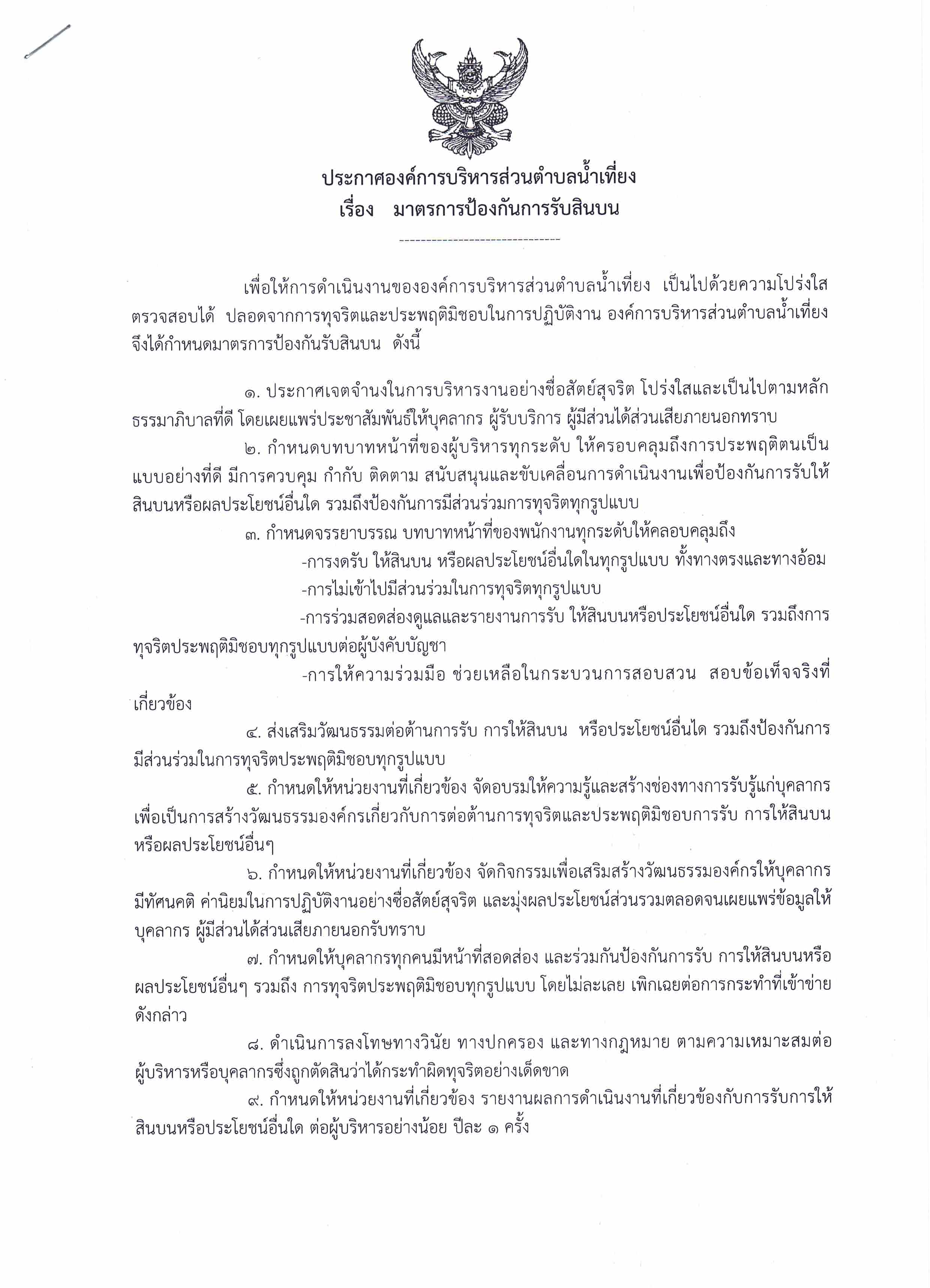 ประกาศ เรื่อง มาตรการป้องกันการรับสินบน